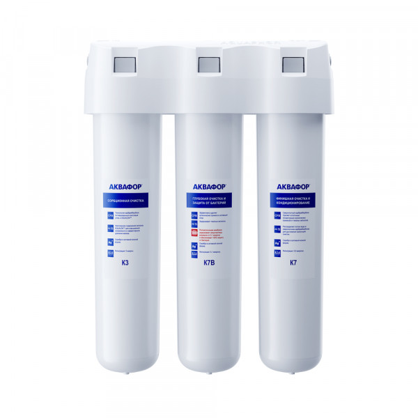 Картриджи последовательно очищают воду и от видимых примесей, и от растворенных. Первый картридж задерживает более крупные частицы, а каждый последующий - более мелкие. Чем больше ступеней - тем лучше фильтр очистит воду: поймает более мелкие видимые частицы ржавчины, песка и ила, успеет захватить из воды максимум растворенных примесей - хлора, нитратов, тяжелых металлов и других.